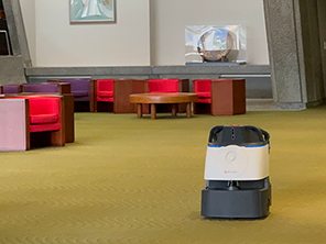 清掃会社にご協力いただき、人とロボットの協働を推進し、施設管理業務の省人化、効率化に取り組んでいます。