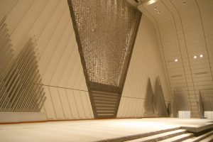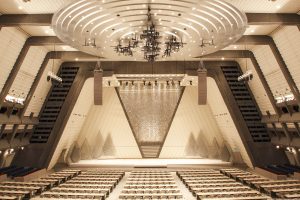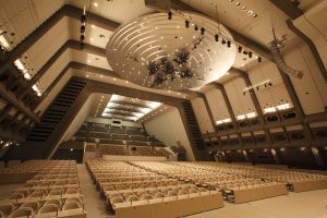 Main Hallは開会式のオープニング等でオーケストラ演奏の実績はありますが、基本的に音楽よりも会議やスピーチに適したサウンドシステムを採用しています。また、舞台の奥行は8mで、カーペット張になっています。Event Hallは3,000m²の無柱空間になっているため、ご要望に応じて仮設舞台やスピーカーシステムを組んでいただくことが可能です。