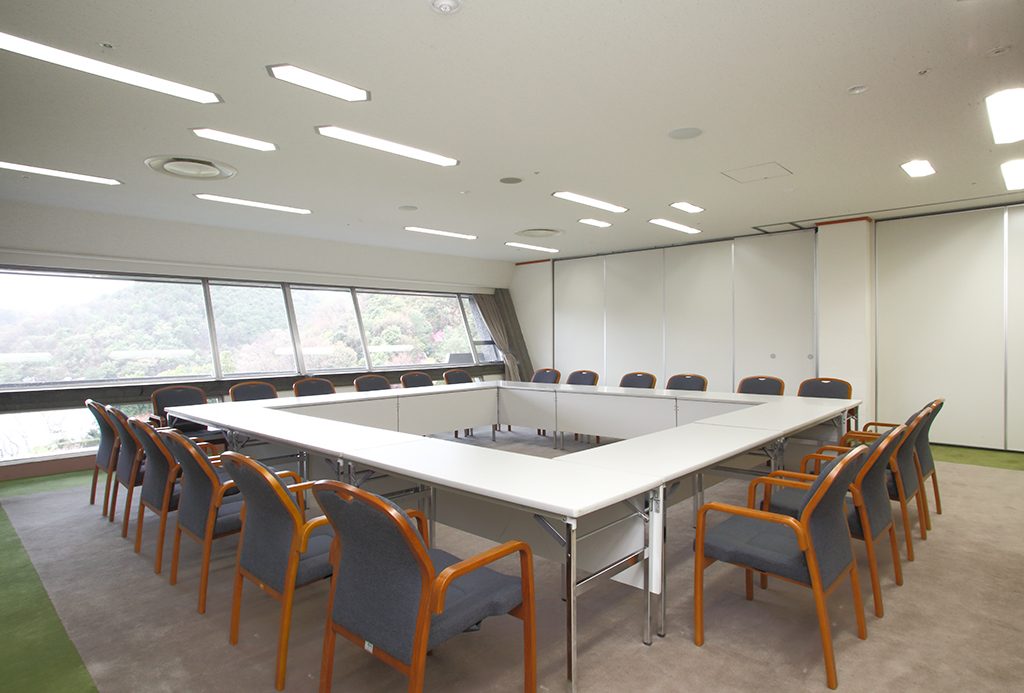 窓の外には日本庭園と宝ヶ池の絶景が広がり、思わずその美しさに目を奪われます。四季折々に表情を変える自然の演出を眺めながらのお食事は、心に残るおもてなしのひと時をお過ごしいただけます。日常から離れた心安らぐ空間で行うワークショップやミーティングでは、豊かな発想によってコミュニケーションが活性化されます。Room 509は間仕切り壁により2分割使用が可能です。エレベーターで2階 Room B-1とB-2や1階 Annex HallとRoom C-1からのアクセスが良いため、各会場と組合せたご利用にも適しています。